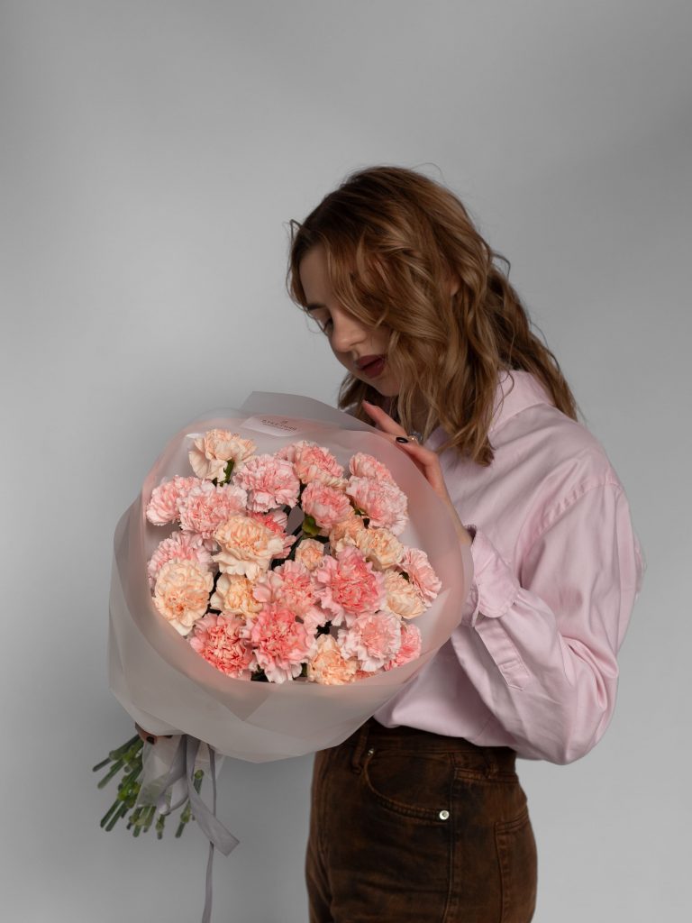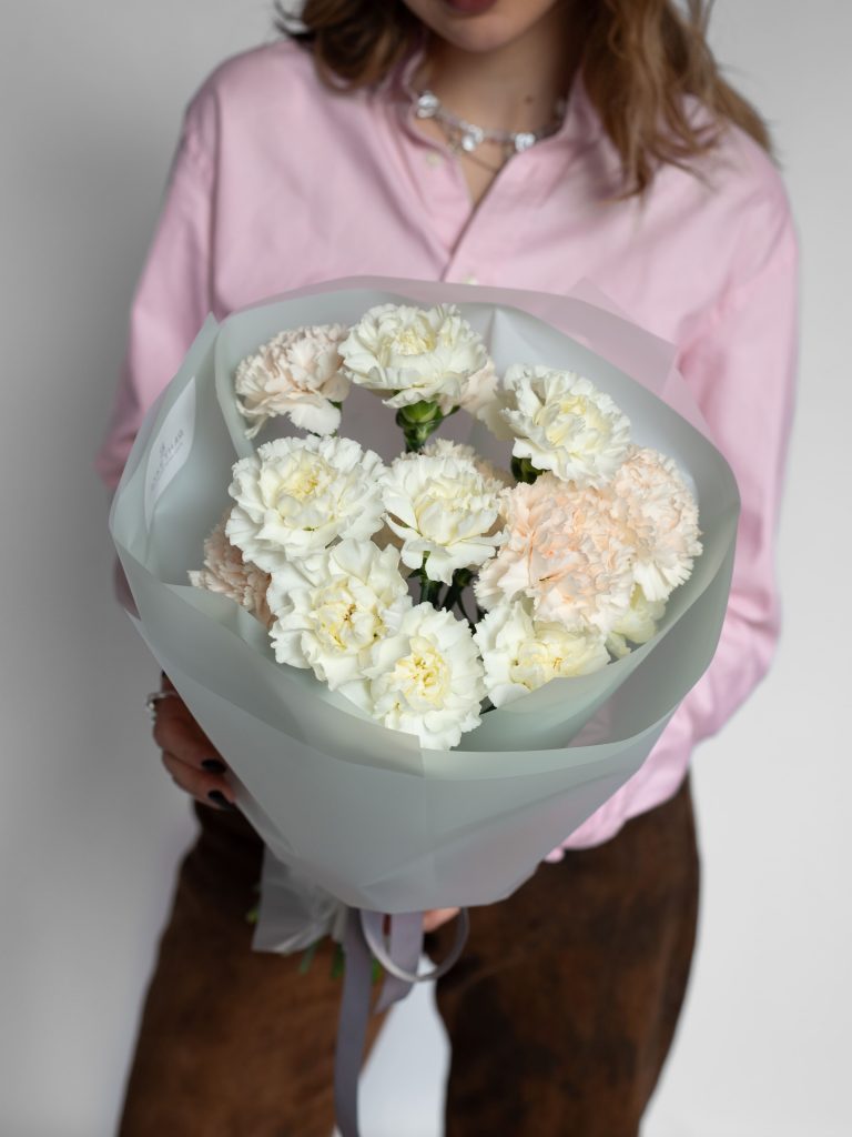 Букет из нежных кустовых гвоздик. Нежный, ненавязчивый и очень стойкий.