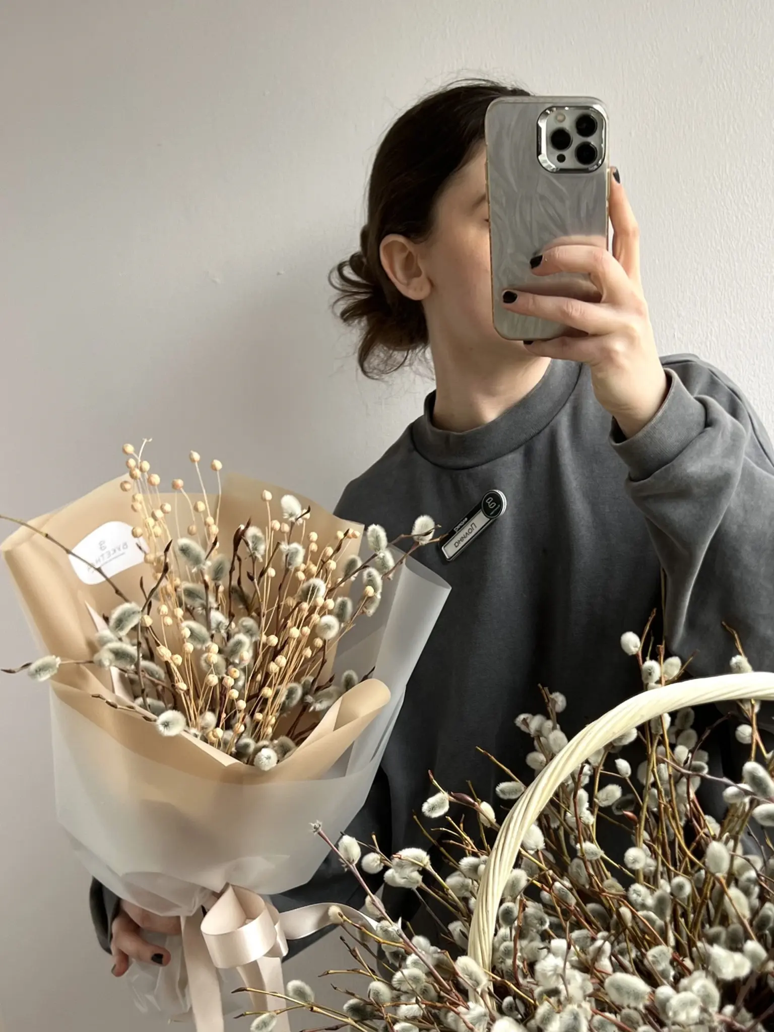 Букет из вербы с сухоцветом льна — лёгкая и аккуратная композиция в природном стиле.
