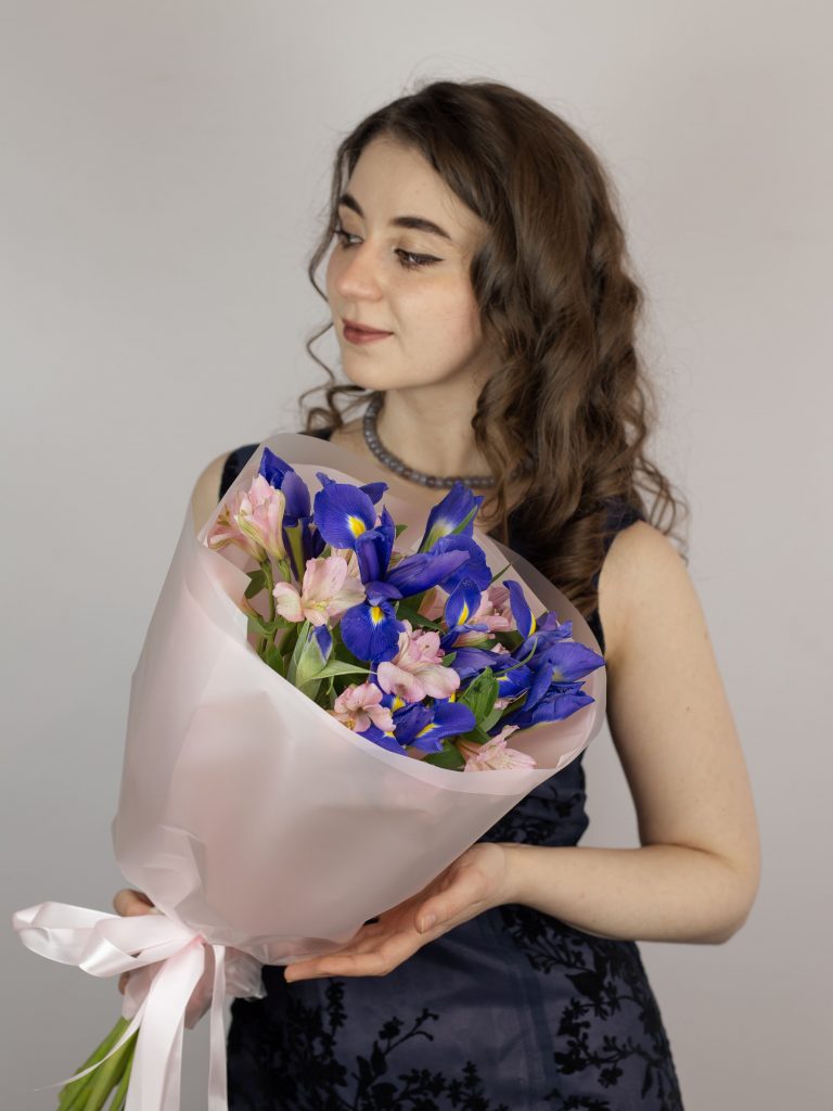 Букет из ярких ирисов и нежных альстромерий