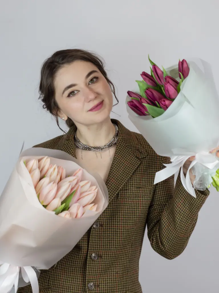 Букеты за ярких, нежных или микс тюльпанов. Вам нужно только выбрать размер (количество штук) и понравившийся цвет.