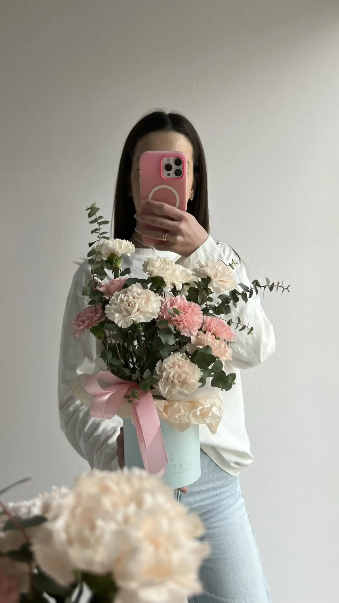 Белая коробка для перевозки букета (