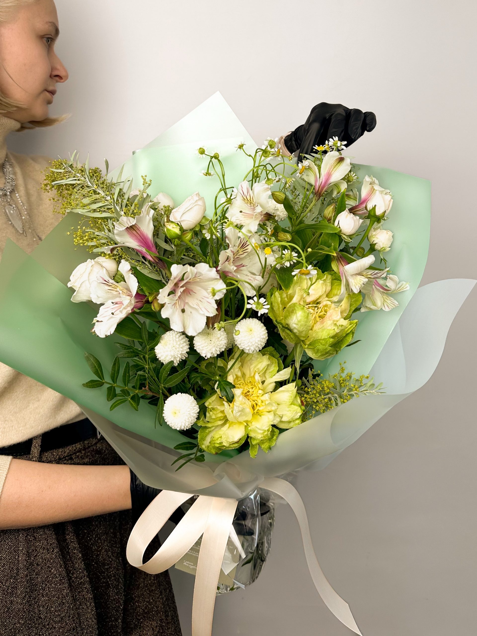 Все букеты мы доставляем на аквапакетах. А в подарок даём подкормку и инструкцию по уходу за букетом.