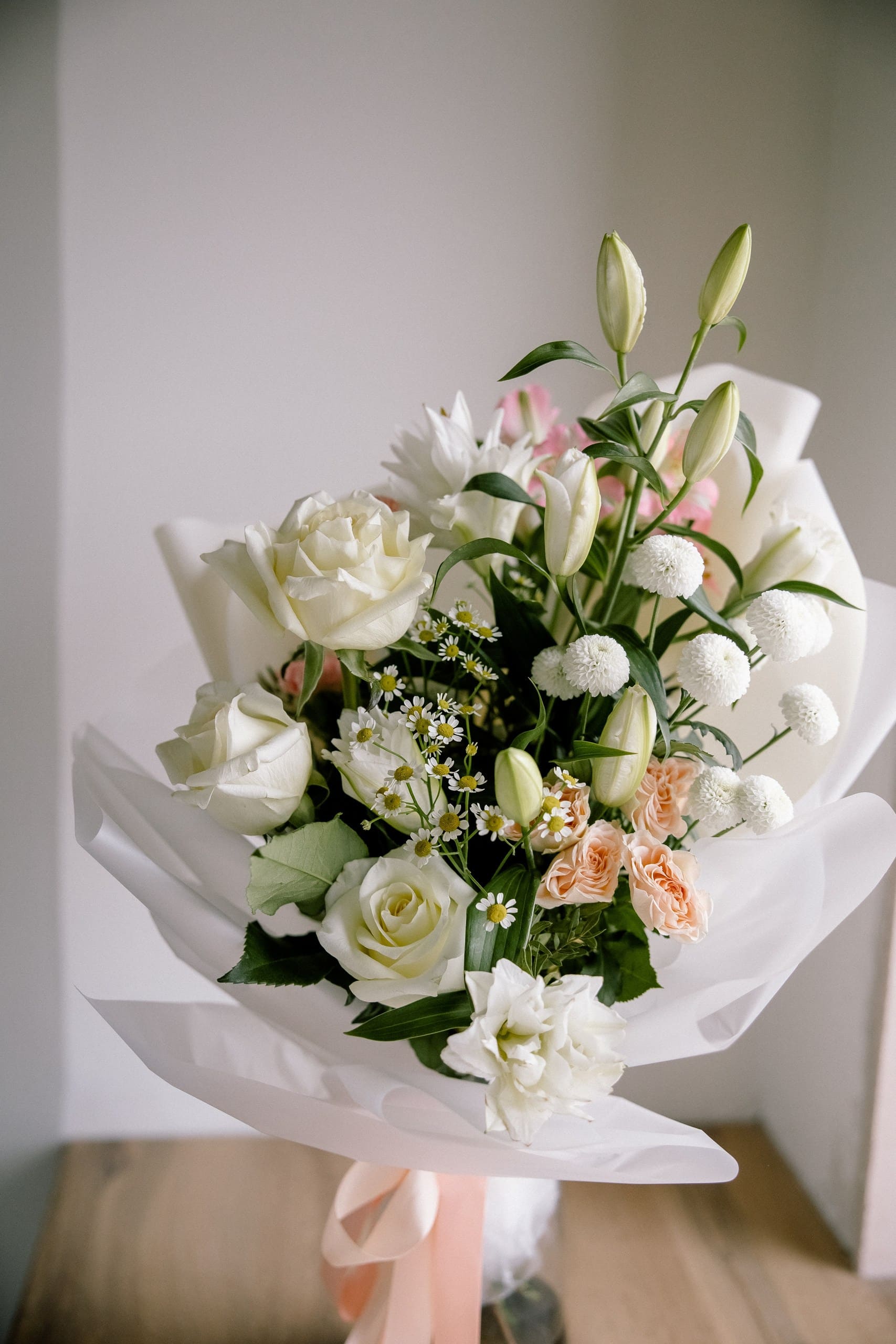Точный состав букета будет изменяться исходя из наличия цветов. Но мы сохраним цветовую гамму, цвет и форму букета. Мы пришлем состав на согласование перед сборкой, а затем готовый букет. Все наши букеты доставляются в аквапакетах. К букету будет приложена инструкция по уходу за цветами и пакетик специальной подкормки для продления жизни цветов