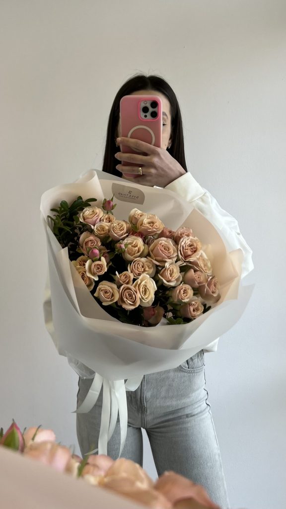 Весенний дуо букет из гвоздики и кустовой розы — сочетание стойкости и нежности. Соберем любое количество под ваш бюджет. Все букеты мы доставляем на аквапакетах. А в подарок даём подкормку и инструкцию по уходу за букетом